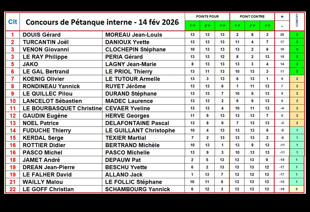 12 doublettes montées pour Gourin le samedi 13 juin