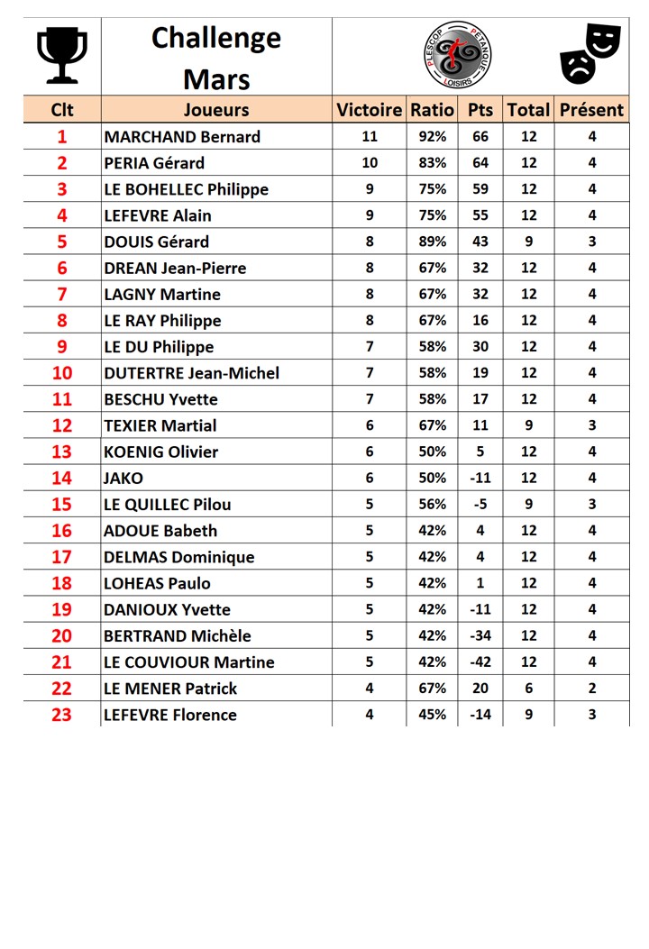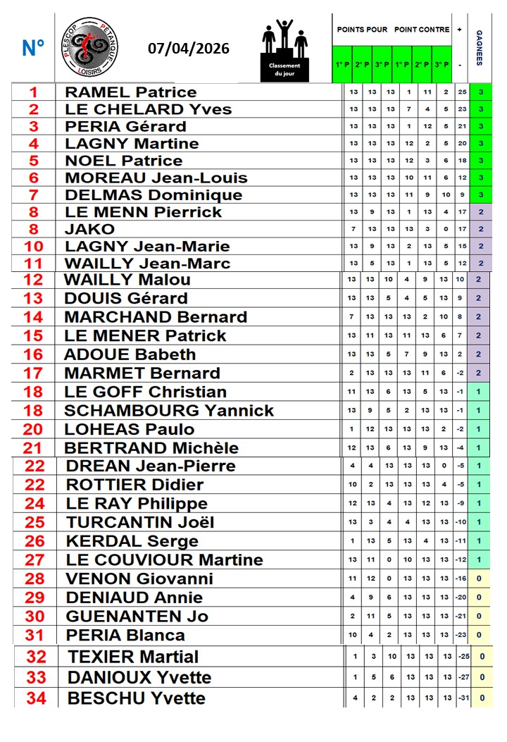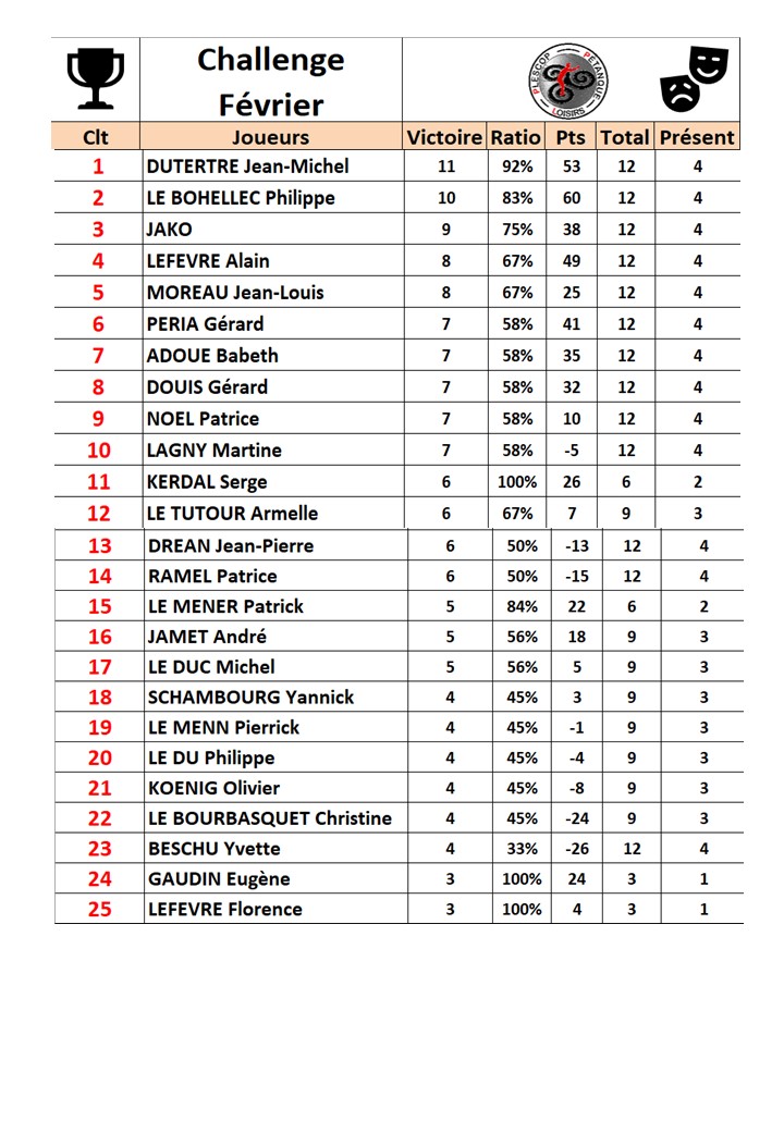 Le mardi est le jour du challenge, les points obtenus sont cumulés.