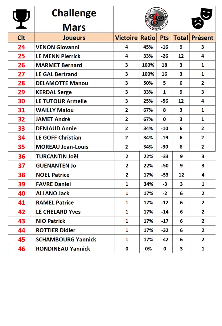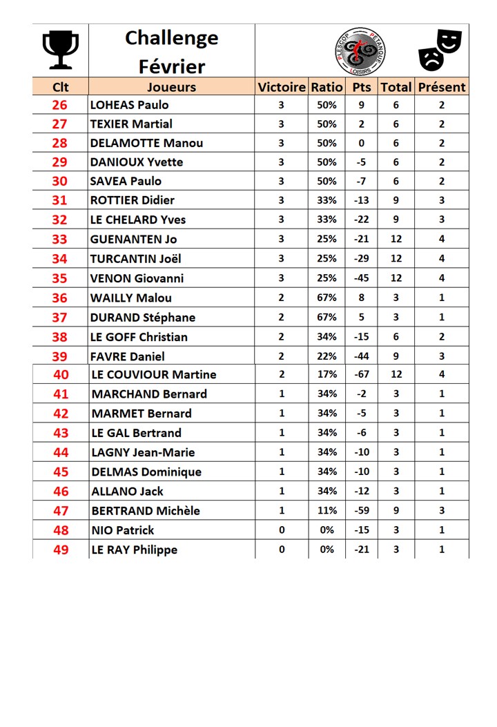 Yannick, encore une belle performance, 40 joueurs.