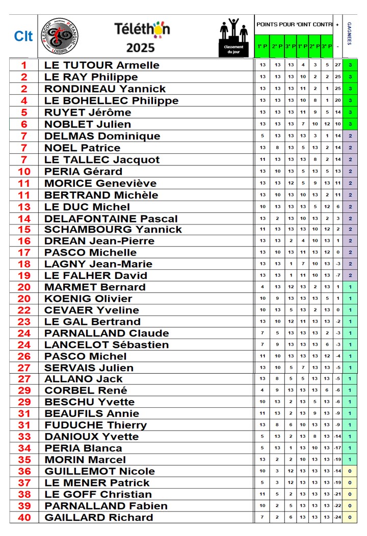 Bravo à tous les participants... 40 joueurs